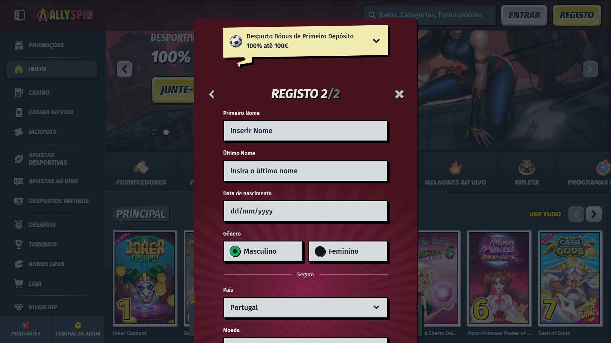 Com uma enorme secção de casino, a AllySpin é também uma excelente opção para jogar online. Com uma vasta coleção de jogos, onde se destacam as slots, jogos de mesa e casino ao vivo, o casino oferece entretenimento de qualidade em todas as suas vertentes.