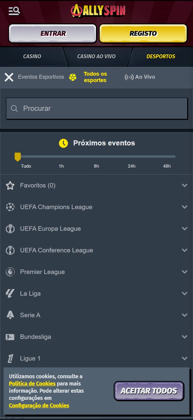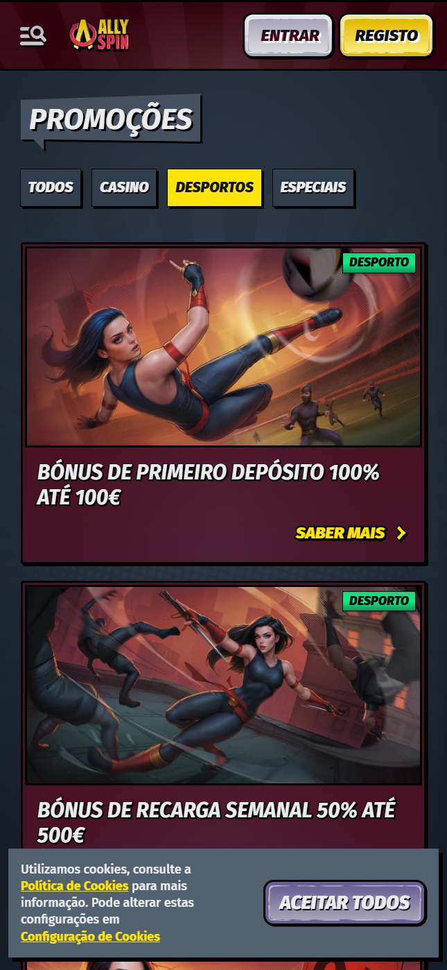 Com uma cobertura abrangente sobe grande parte dos desportos, a AllySpin Bookmaker tem uma oferta completa sobre apostas desportivas, permitindo aos apostadores apostarem com competições nacionais e internacionais.