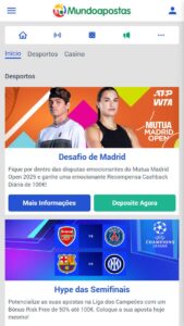 Infelizmente, a Mundoapostas ainda não dispõe de uma aplicação de apostas nativa. No entanto, o site também recebeu uma nova forma de acesso, o site móvel. Esta variante permite aceder à plataforma facilmente e sem percalços com qualquer dispositivo móvel com uma tela mais pequena.Através dela, os seus utilizadores, portugueses e internacionais, conseguem aceder à sua área de jogo em qualquer lugar do mundo, o que facilita todo o processo de apostas e utilização dos métodos de pagamento.