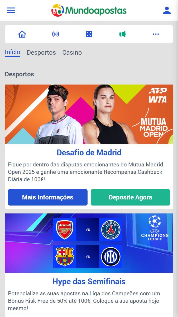 As ofertas para as apostas desportivas vão muito além de apenas o bónus de boas-vindas. Esta é uma excelente notícia para quem quer e já aposta no site Mundoapostas, pois terá a oportunidade de continuar a ganhar. Atualmente, as principais promoções são: