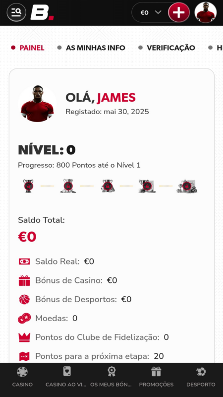 A parte do registo é intuitiva e com poucos dados o jogador fica registado e pronto para a ação.
