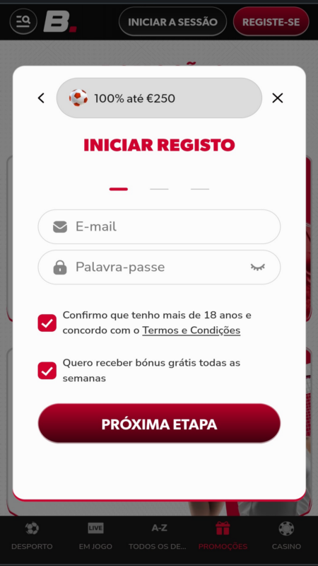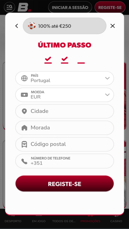 | 🎁 Bónus de Boas-Vindas | 100% até 250 € |