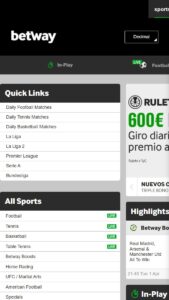 Todo o site destaca-se com um design moderno, combinando cores associadas aos vencedores, o verde e o preto. Assim, ao entrar na Betway, sente-se em casa e num local cheio de elegância e profissionalismo. Em relação à navegação, temos uma navegação intuitiva, com menus bem organizados que facilitam encontrar rapidamente qualquer evento desportivo ao vivo ou pré-jogo.