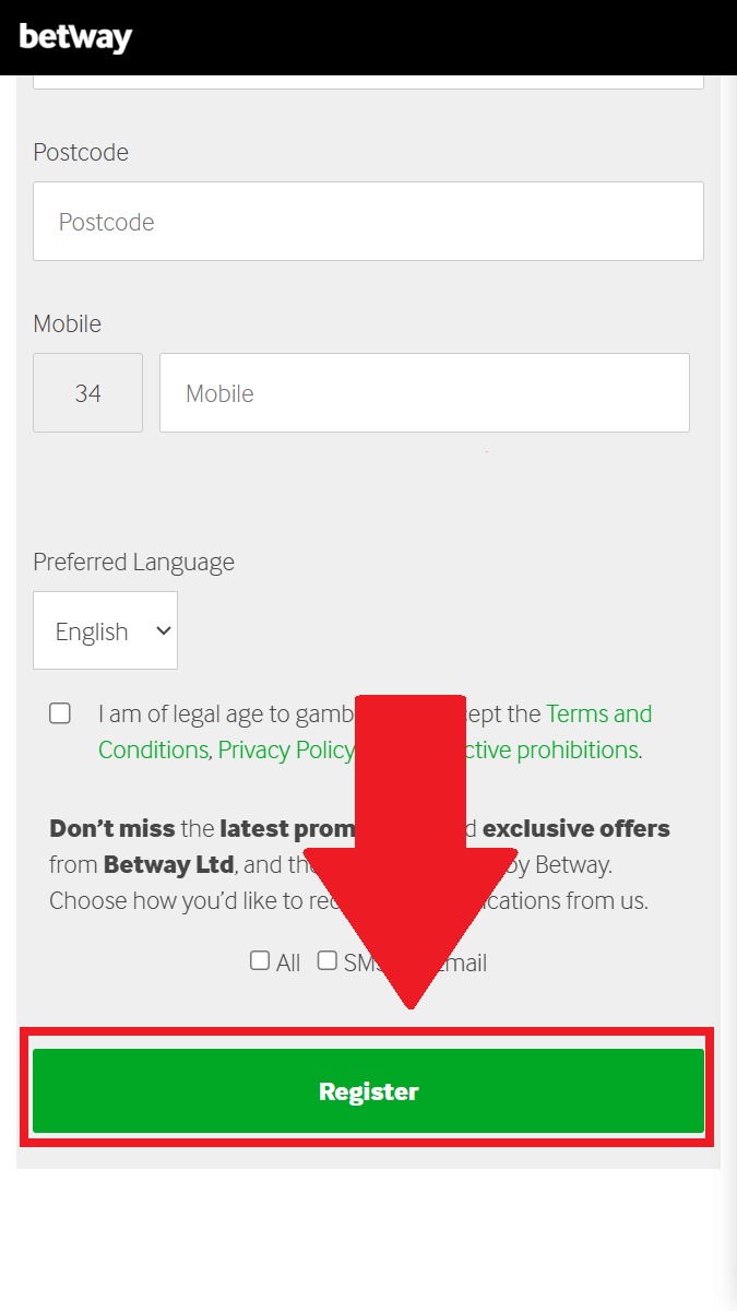 Atualmente, os jogadores portugueses não conseguem inscrever-se na Betway.pt. Isto acontece, uma vez que a operadora deixou de aceitar novos registo em Portugal a 30 de setembro de 2024. O processo de registo era simples e bastante fácil de executar, em que simples passos permitiam ter uma conta totalmente verificada e pronta a jogar. Esse processo era o convencional, onde devia: