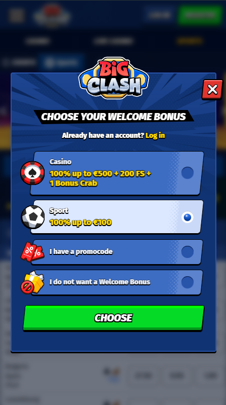 No BigClash Bookmaker, tens sempre bónus disponíveis, como os seguintes:
