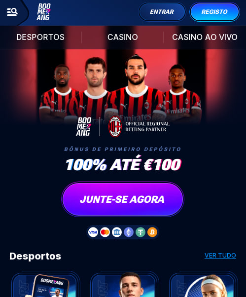 No Boomerang-bet pode encontrar uma grande diversidade de modalidades desportivas onde pode apostar através do computador ou do mobile e também vários métodos de pagamentos e bónus interessantes.