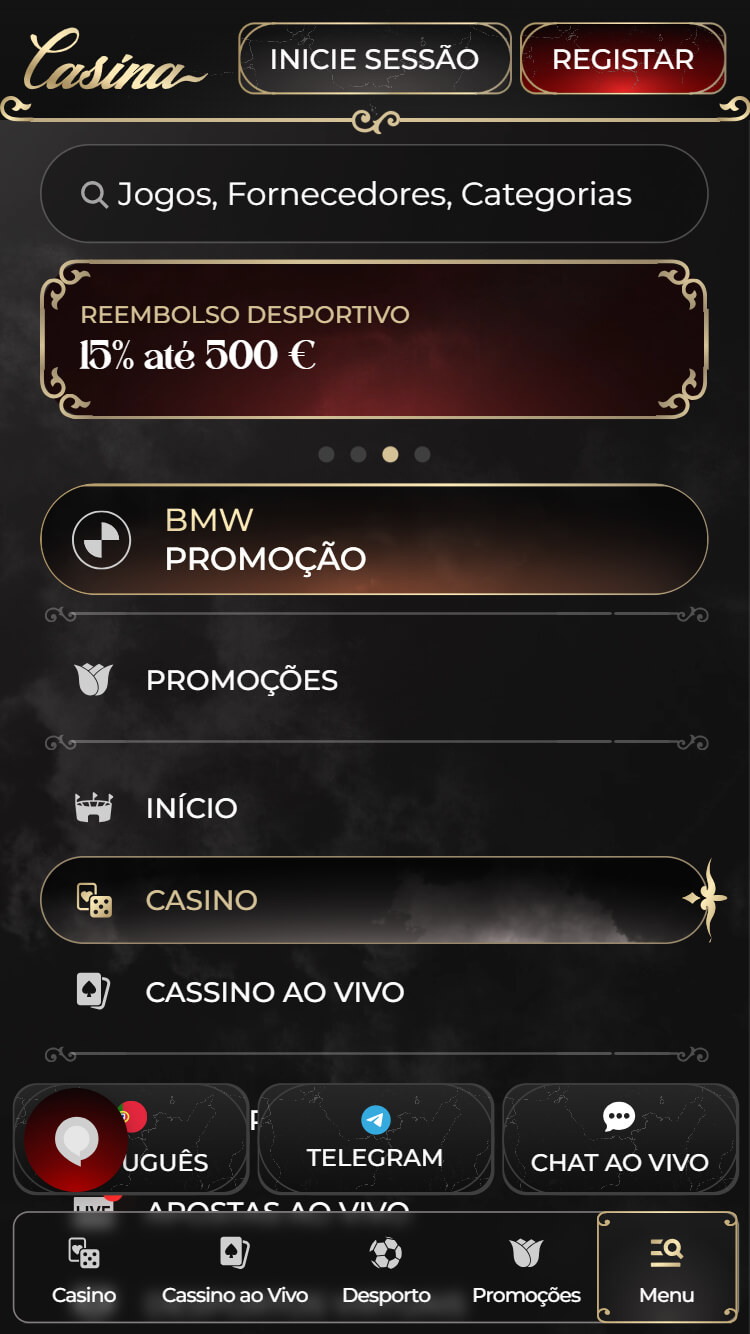 A Casina vai além das apostas desportivas, oferecendo também uma área de casino muito completa, onde é possível encontrar desde jogos ao vivo até slots, jogos de cartas e outras opções variadas.
