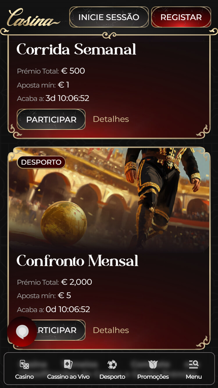 A competitividade das odds na casa de apostas Casina encontra-se num nível bastante equilibrado quando comparada com outras plataformas que operam em Portugal. Na Casina, os utilizadores têm acesso a odds claras e ajustadas, proporcionando uma experiência justa e consistente para todos.