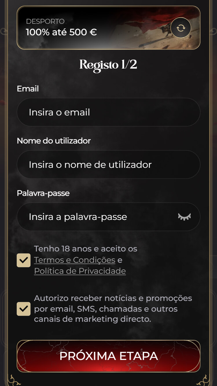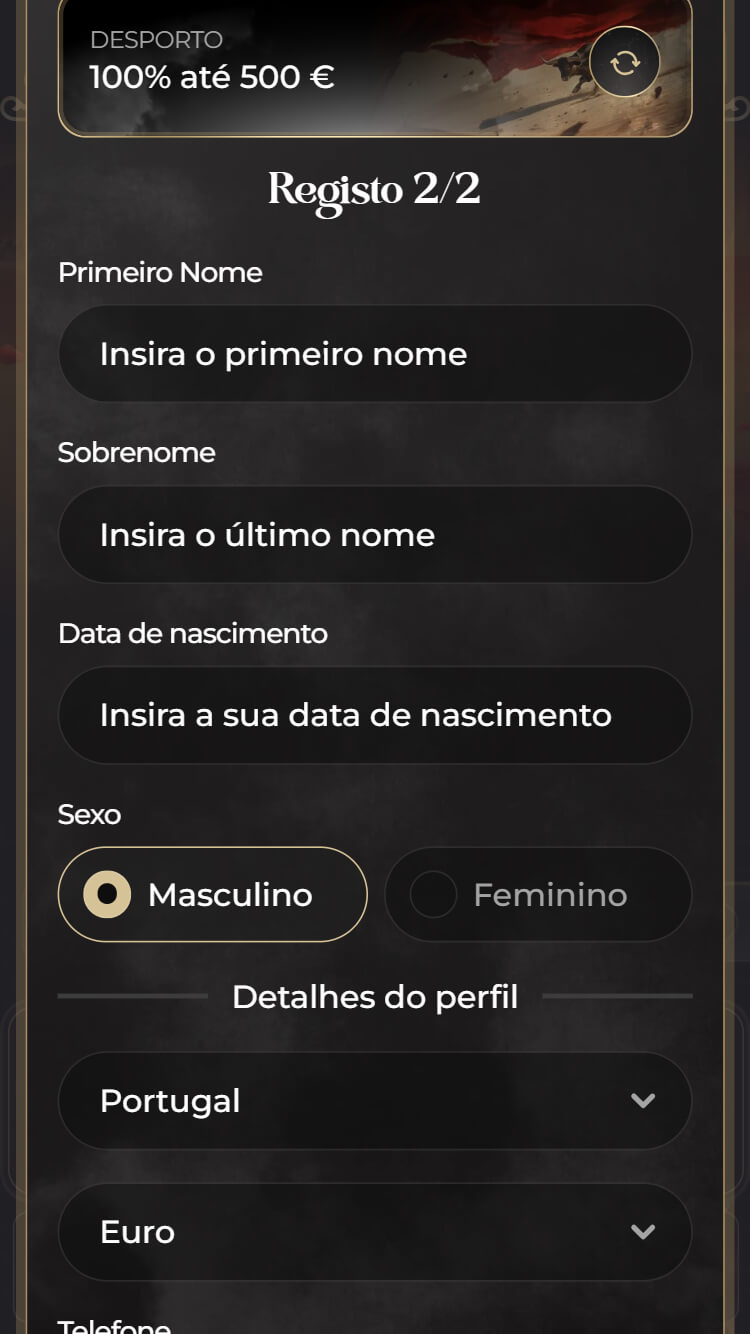 O site está totalmente adaptado a dispositivos móveis, o que permite apostar diretamente no smartphone sem complicações. Tudo se ajusta automaticamente ao ecrã, tornando a experiência prática e confortável, como se estivesse a usar uma app.