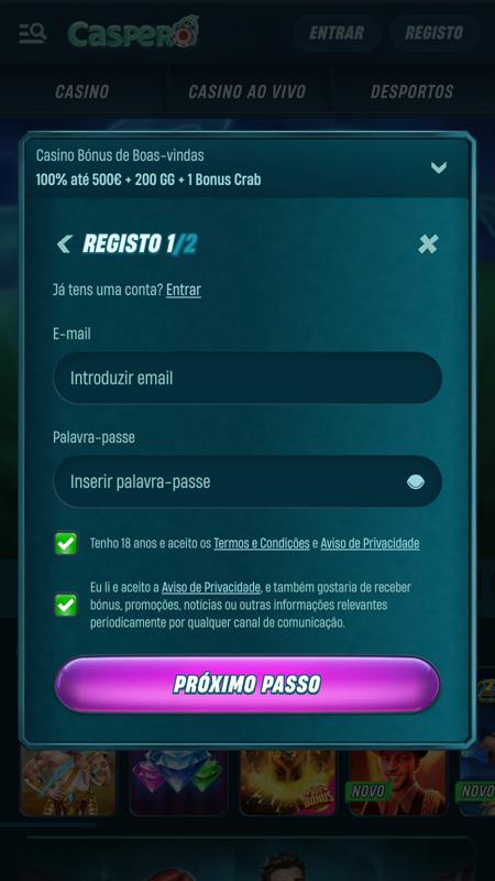 A aplicação móvel pode ser obtida através do seu dispositivo móvel, e podes fazer o download ao abrir o site da Caspero, onde te será sugerida na parte superior do ecrã! É simples e mantém a mesma estética do site, o que facilita o acesso direto através de dispositivos móveis e garante a mesma qualidade e emoção que o site aberto num navegador de internet.
