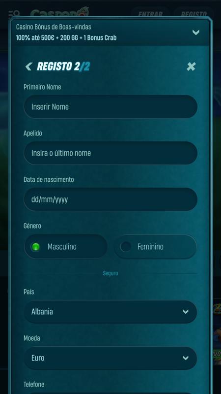 | 💸 Bónus de Boas-Vindas (Casino) | 100% até 500 € + 200 Giros Grátis + 1 Bónus Crab |