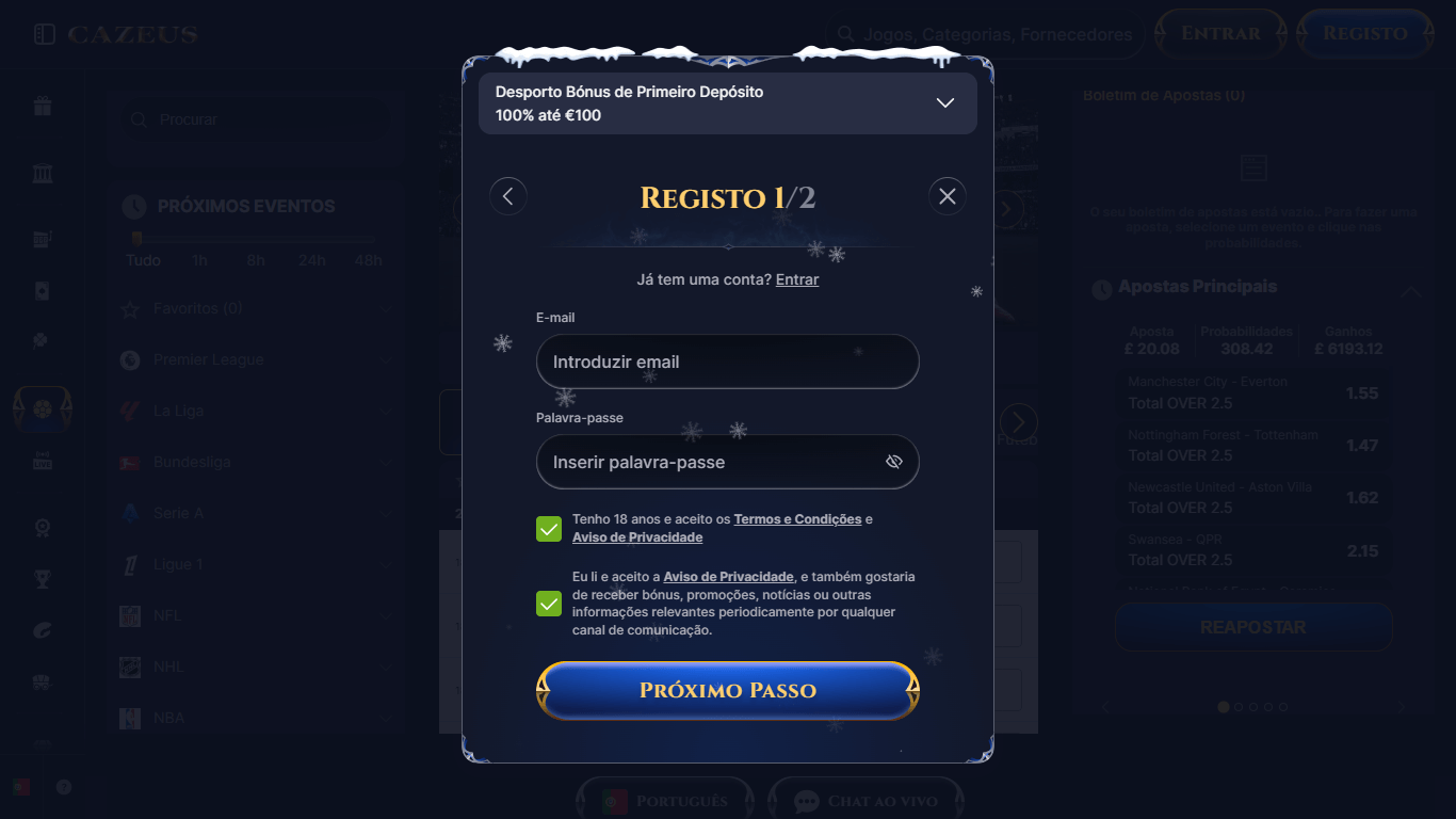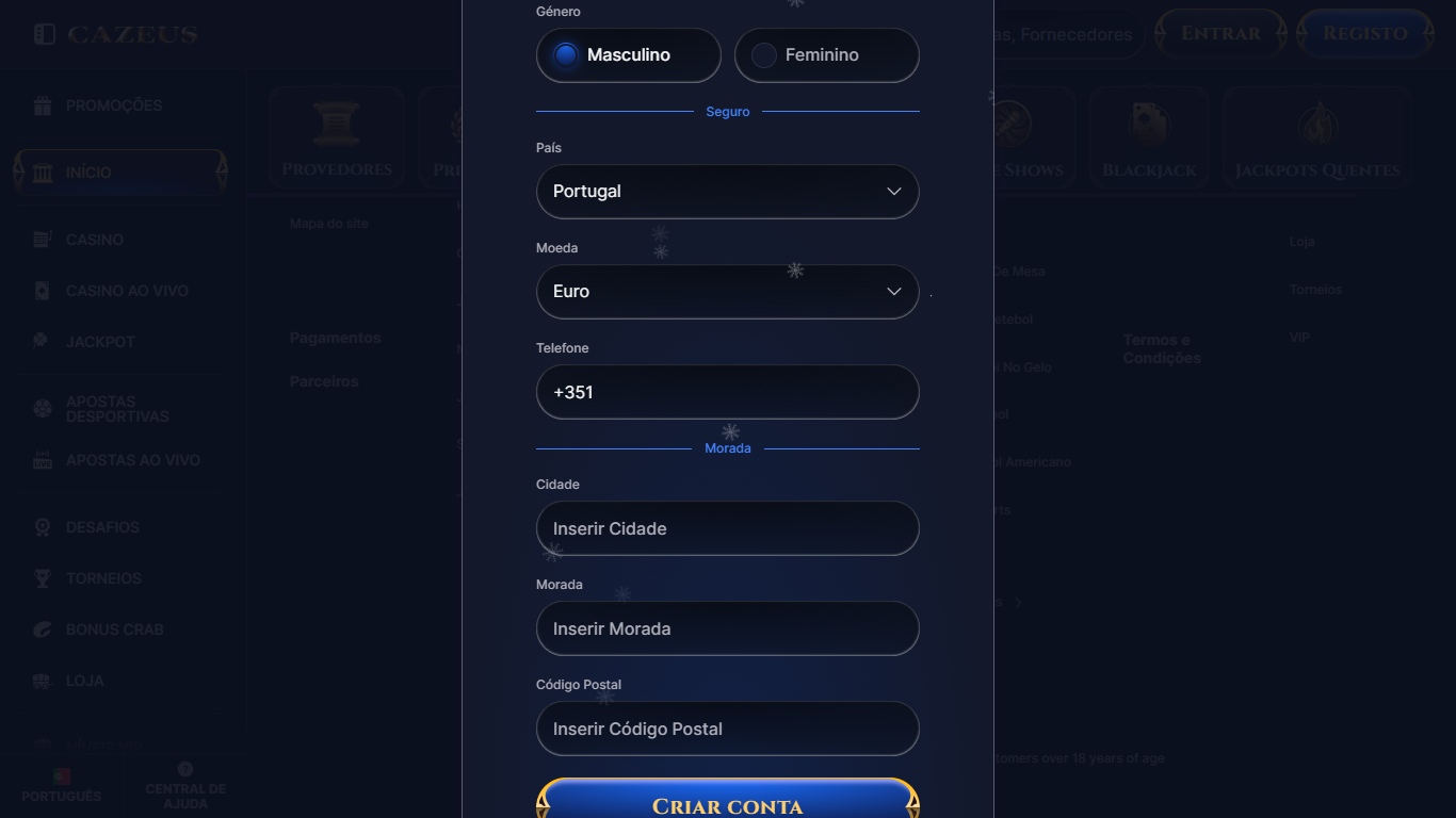 O CaZeus proporciona um processo de registro completo, com envio de ligação para o e-mail para validar a nova conta. Após essa etapa, o jogador deve confirmar a conta, enviando os documentos pessoais solicitados.