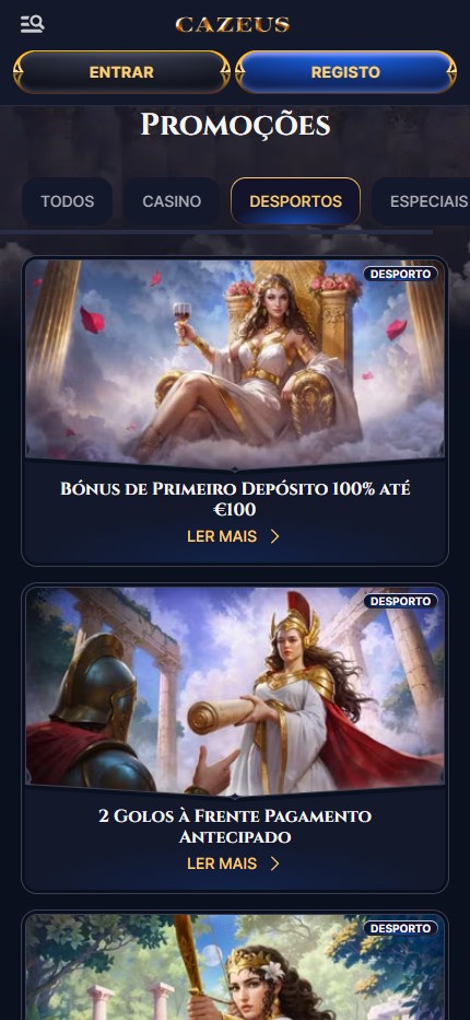 Para além do bónus de boas-vindas, a oferta do CaZeus é bastante diversificada e abrangente, como se assinala abaixo: