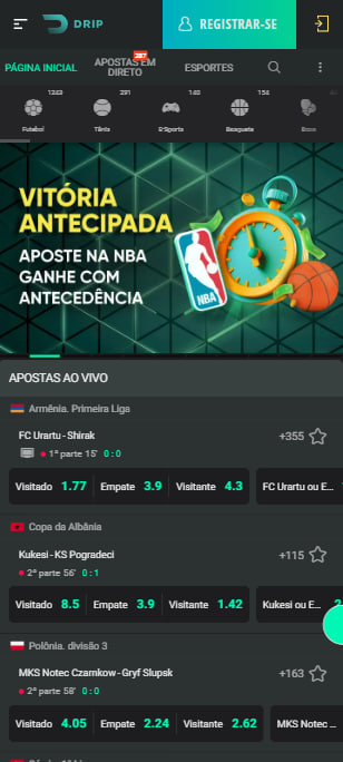 A Drip oferece apostas ao vivo em todos os desportos. Os eventos em tempo real possuem cotações voláteis, ou seja, estão em constante mudança. Portanto, os jogadores poderão aproveitar isto para ganhar ainda mais ao escolherem mercados mais propícios de acontecer. As partidas mais importantes são postas em destaque logo no topo da lista na área de desportos.