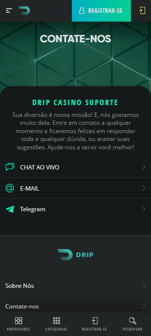 | 📞 Apoio ao cliente | 24/7 Chat em direto, Email: help-drip@support.win, Telegram |