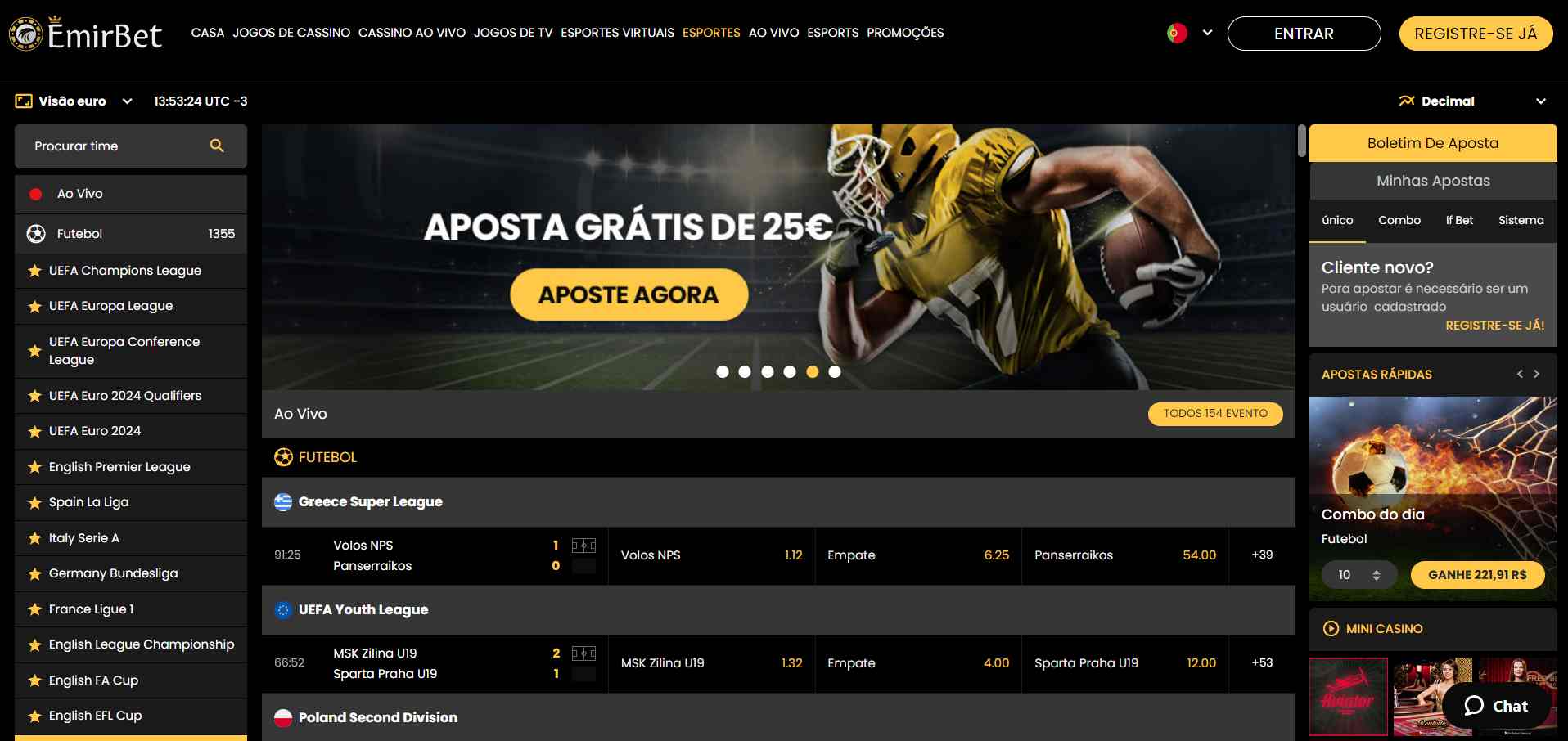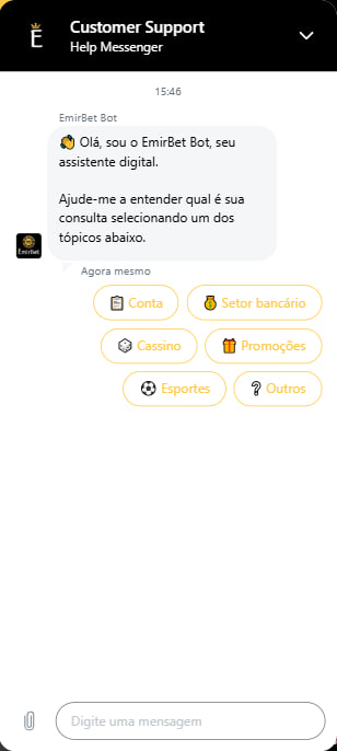 | 📞 Apoio ao cliente | 24/7 Chat em direto, Email: support@emirbet.com |