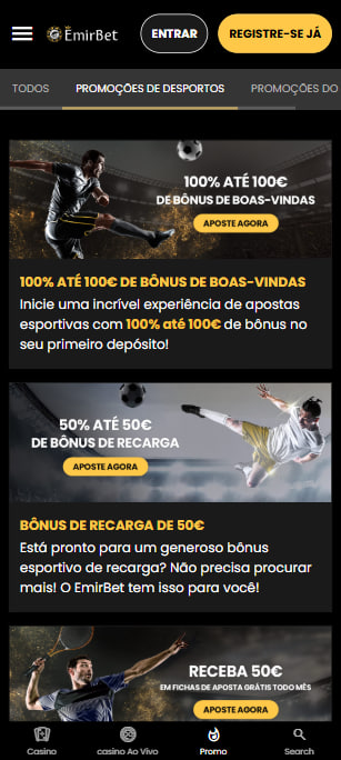 As ofertas estão disponíveis para todos os utilizadores da EmirBet. Registre-se para ter acesso a todas as funcionalidades divertidas da casa.