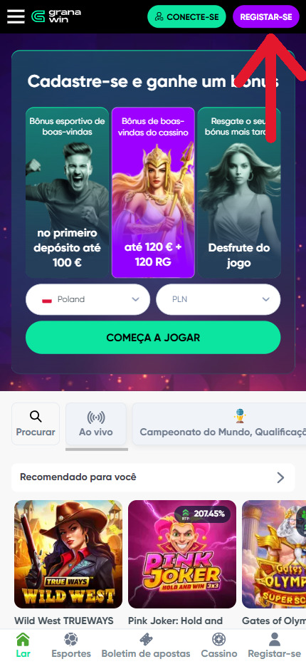 Para começar a apostar é preciso fazer o registo no site e para isso basta fazer o seguinte: