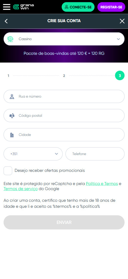 É obrigatório estar registado para o apostador conseguir apostar em qualquer desporto ou para jogar a dinheiro real qualquer jogo do Granawin Bookmaker. Felizmente este casino mantém as coisas bastantes simples e o registo é só mais uma.