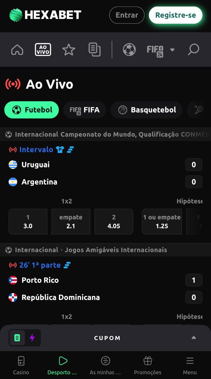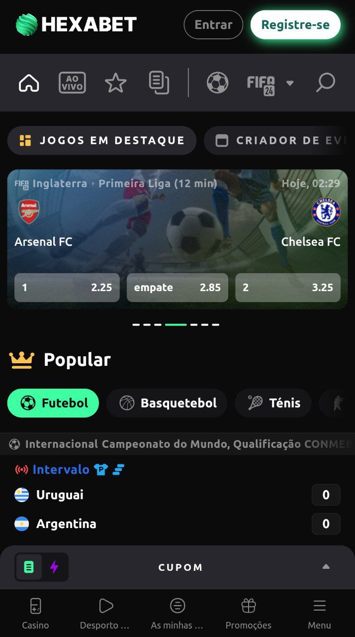 Desta forma, o cliente pode selecionar o grupo pretendido e procurar os eventos que lhe interessam. Nas apostas ao vivo a oferta da Hexabet é tão extensa como a das apostas pré-jogo, com apresentação das várias modalidades desportivas e dos diversos torneios de eSports.