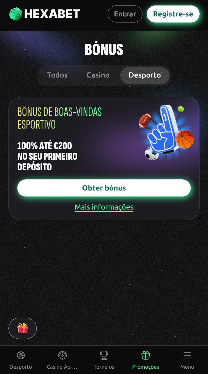 A Hexabet não tem um bónus de boas-vindas dedicado às apostas desportivas. O bónus que oferece é para uso nos jogos de casino. No entanto, a marca apresenta um mapa de bónus diário, com ofertas de apostas grátis ou odds melhoradas, em função dos eventos disponíveis.