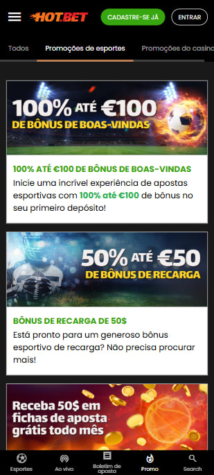 Sem dúvida que o HotBet bónus de boas-vindas terá que ser analisado, caso pretende registar conta na melhor casa de apostas em Portugal. Assim, usando o nosso código promocional HotBet (quando aplicável), poderá reclamar até 100€ de HotBet bónus, quando um valor de 100% do 1º depósito.