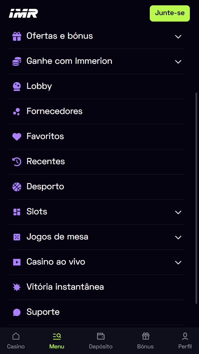 Com jogos de mesa como os bastante apreciados blackjack, póquer ou bacará, as suas parcerias com os melhores fornecedores do ramo, levam a que o Immerion Casino oferecem diversidade e qualidade.