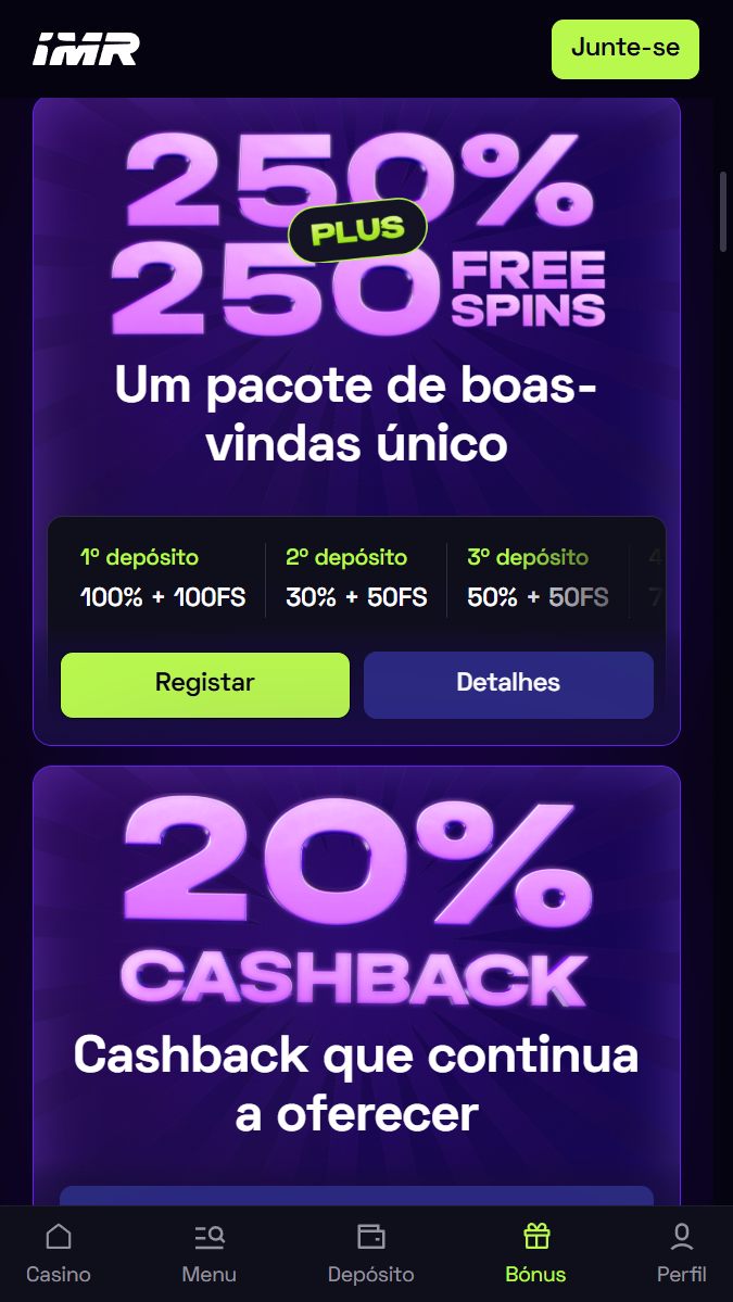Após este primeiro, terá ainda mais 3 depósitos para usufruir do pacote completo de boas-vindas, podendo totalizar um valor 3.000 € e 150 Rodadas Grátis, leia os termos e condições no site para todas as regras do mesmo.