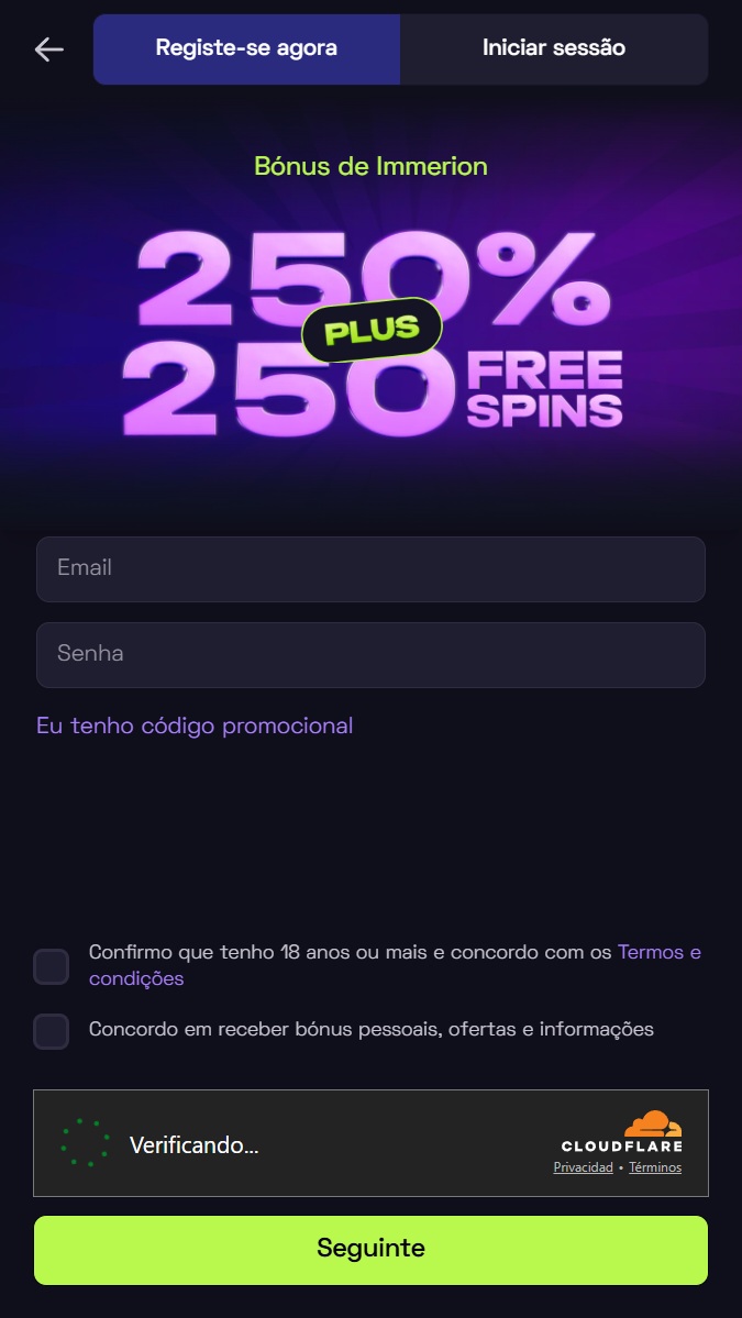Para registar na Immerion Casino Bookmaker faça o seguinte: