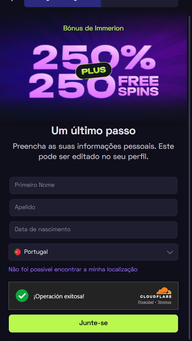 A inscrição é efetua rapidamente, sendo solicitado somente algumas informações para dar início a uma experiência de apostas online totalmente inovadora, com os melhores mercados de apostas e os bónus desportivos mais atrativos do mercado.
