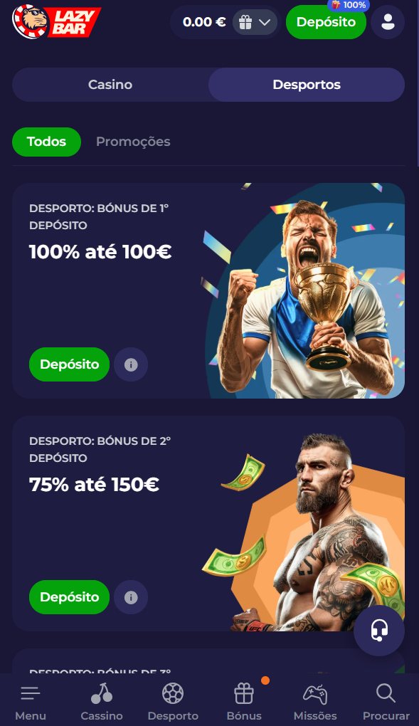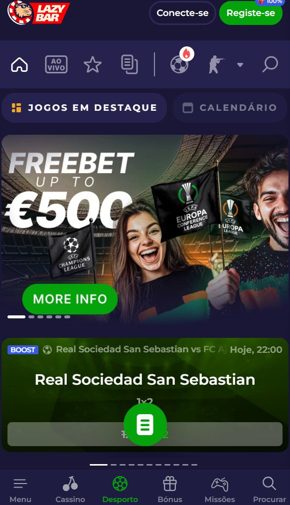 O Lazybar é um nova casa de apostas lançada em 2024, destacando-se pela sua interface intuitiva e design atraente. A plataforma conta com um menu lateral bem organizado, permitindo ao utilizador navegar facilmente entre as diversas seções da casa de apostas, encontrar os eventos específicos ou explorar as promoções disponíveis.