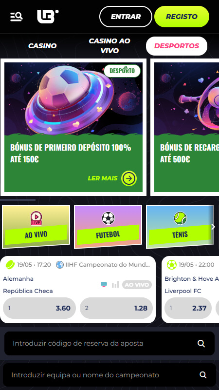 | ⚽ Desporto | Futebol, Basquetebol, Ténis, eSports, Voleibol, Hóquei no Gelo, Andebol, Futsal, Râguebi e outros |