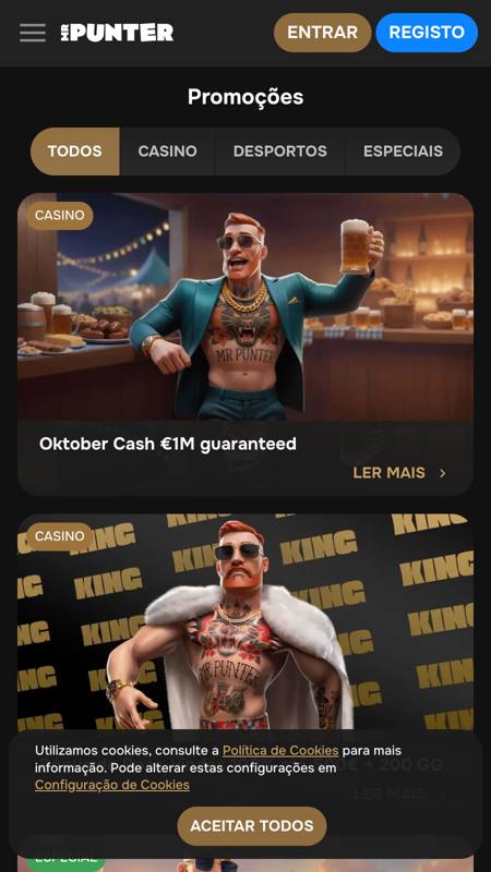 A aplicação móvel pode ser obtida ao abrir o site do MrPunter num dispositivo móvel, onde te será sugerido na parte superior do ecrã que instales a aplicação! É simples e mantém a mesma estética do site, facilitando o acesso direto através de dispositivos móveis e garantindo a mesma qualidade e emoção do site aberto através de um navegador.