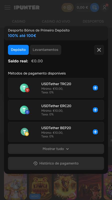 | 💳 Métodos de Pagamento | Mastercard, Carteiras Eletrónicas, Criptomoedas e Outros |
