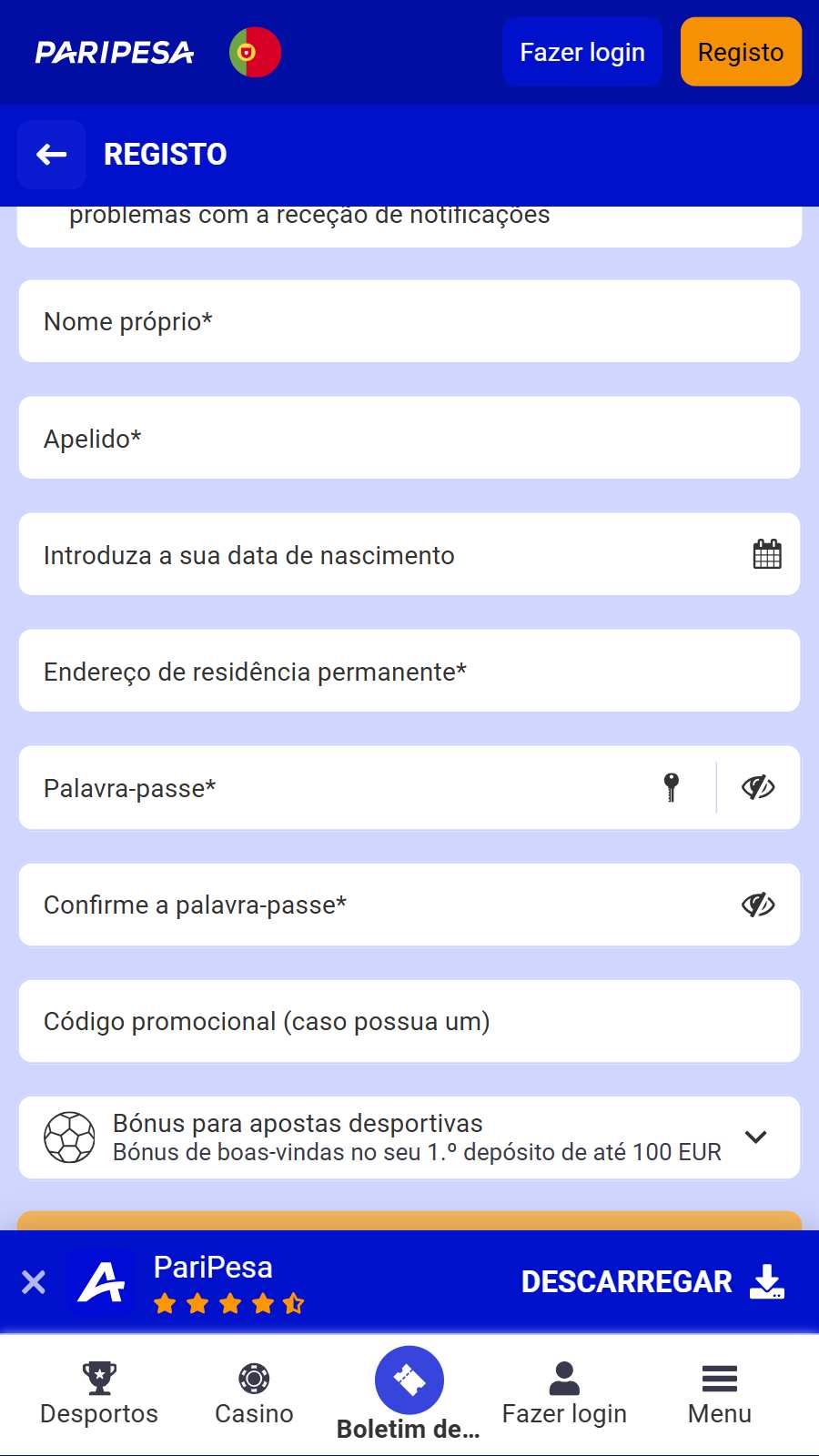 Para que as apostas desportivas tenham efeito, é mesmo obrigatório estar registado. Para isso, segue os passos seguintes: