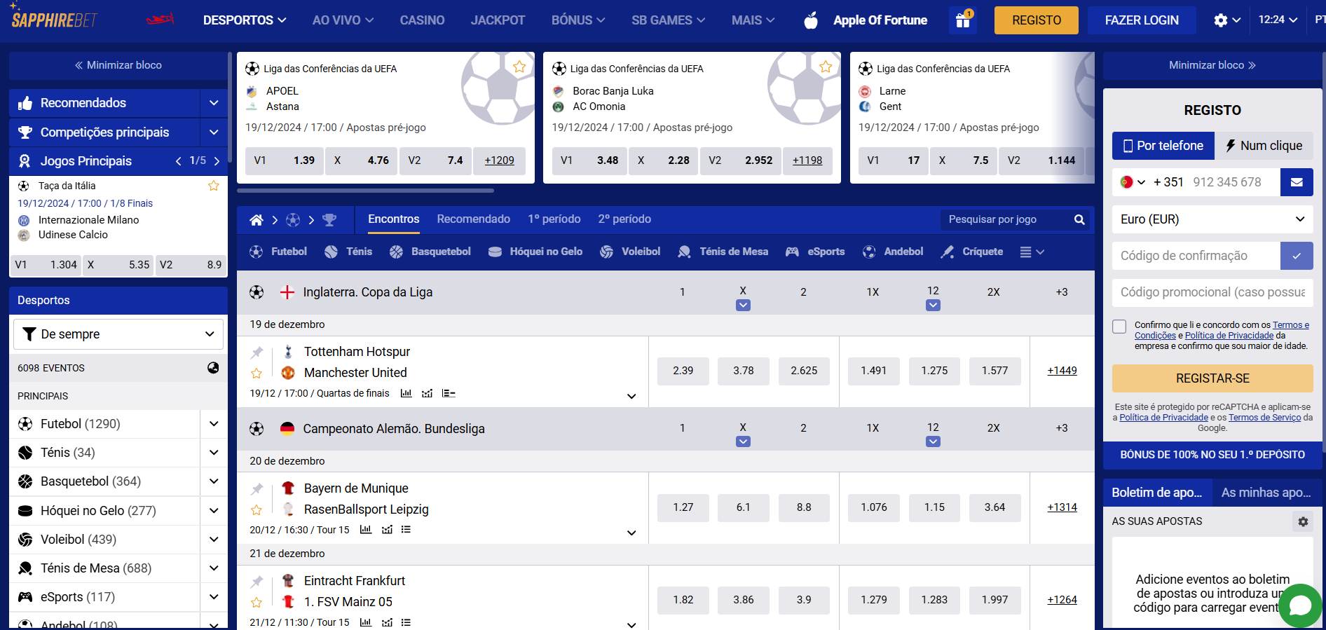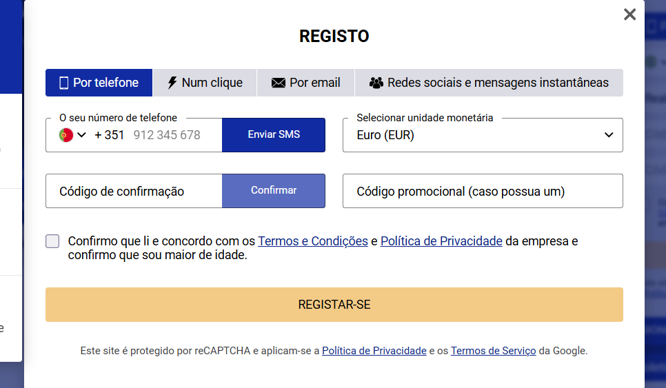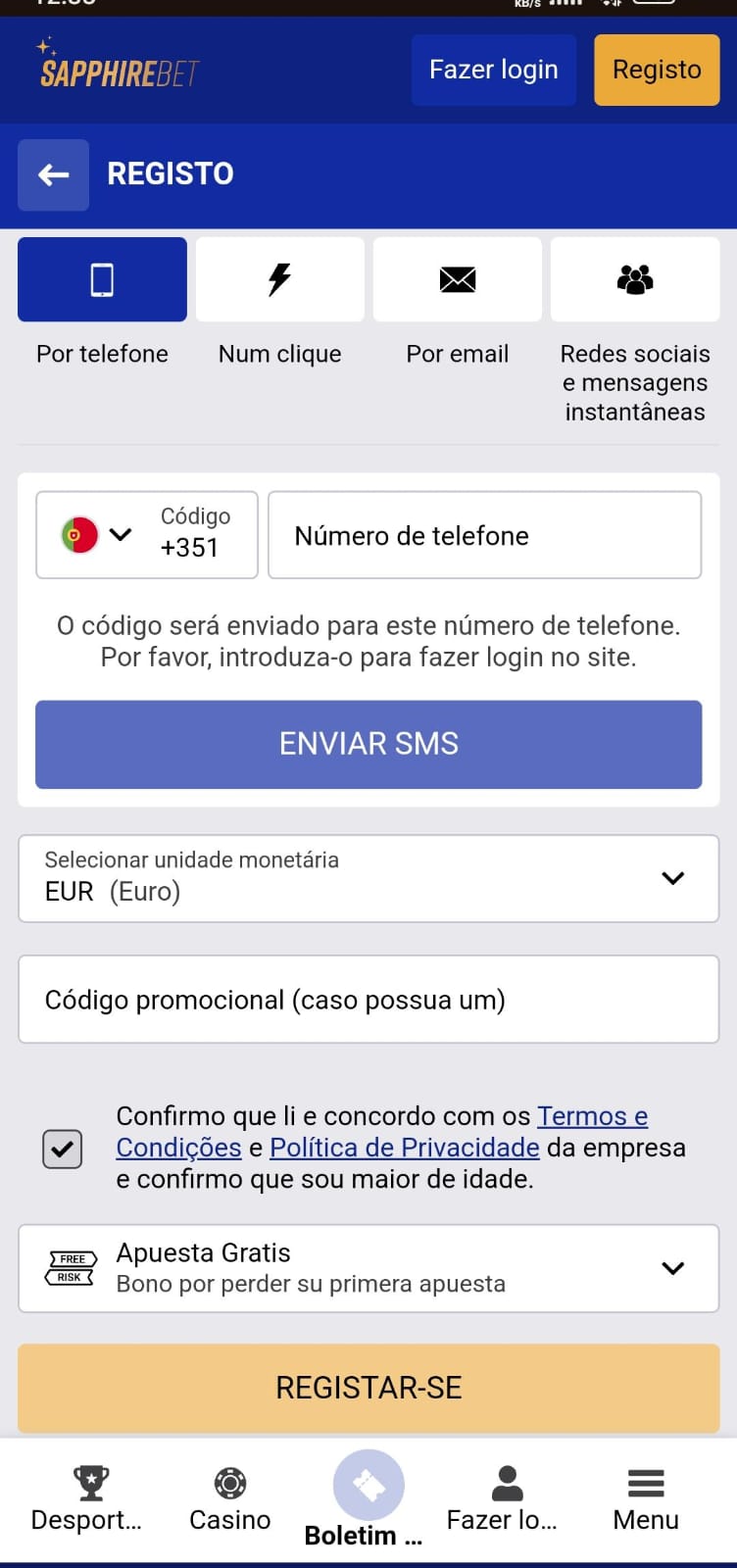 Para efetuar o seu registo no Sapphirebet, o utilizador deve seguir as indicações abaixo: