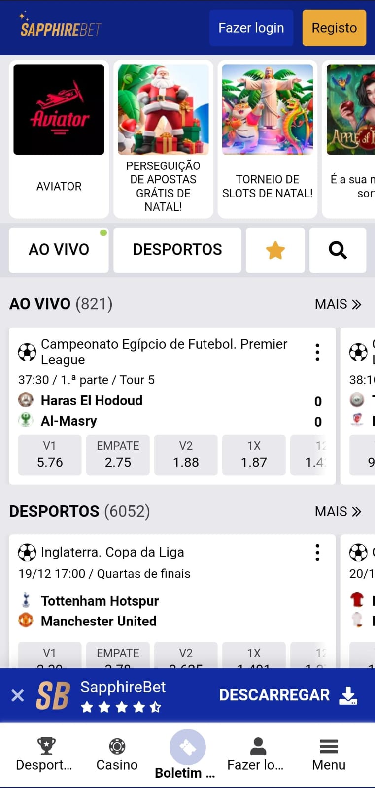 Com apostas pré-jogo e apostas ao vivo, a Sapphirebet é uma plataforma confiável e segura, com vários métodos de pagamento, interessantes promoções e atendimento ao cliente em permanência. A Sapphirebet destaca-se como uma nova casa de apostas em Portugal, trazendo uma proposta moderna e ampla que tem vindo a captar o interesse de muitos apostadores no país.