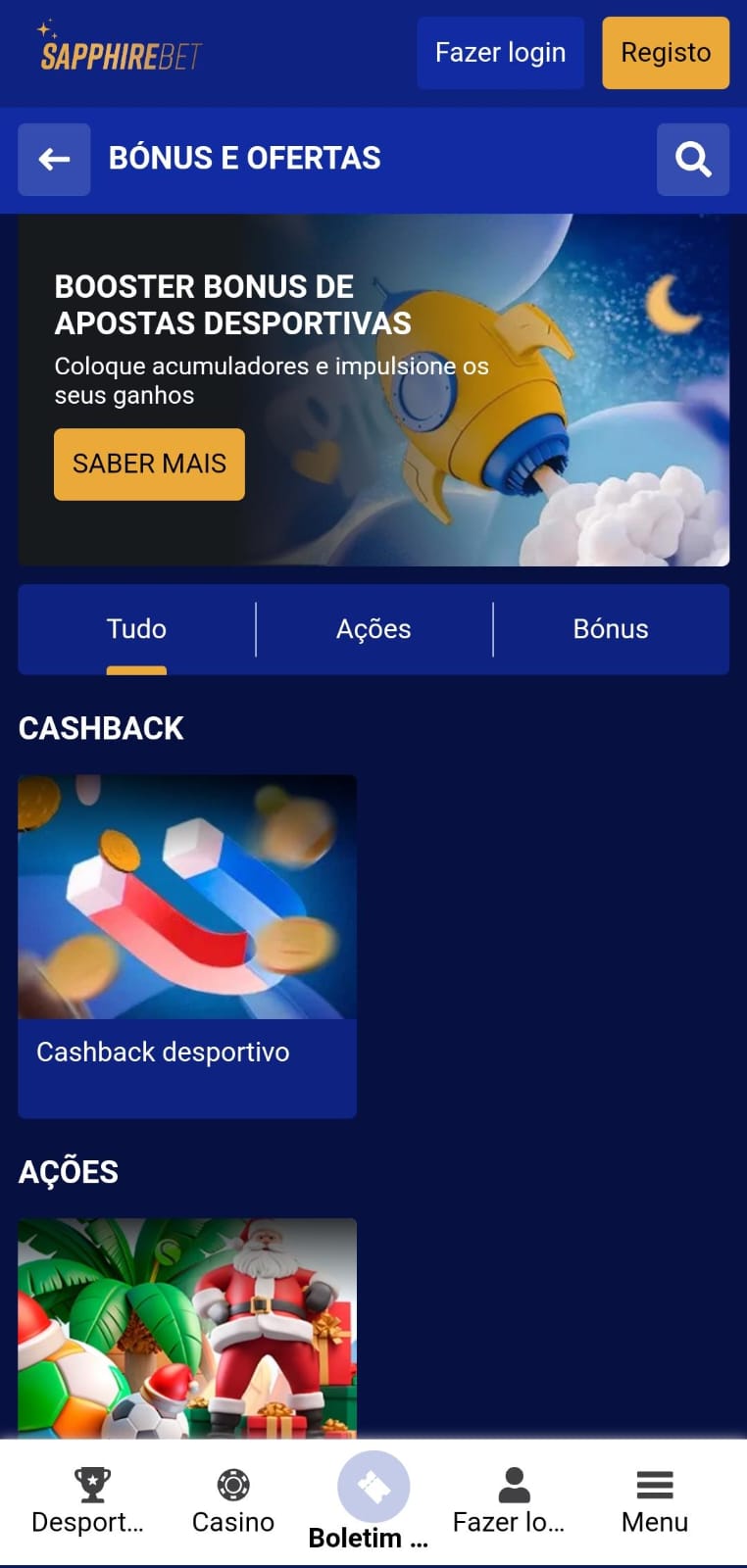 Na lista de campanhas promocionais da Sapphirebet encontramos as seguintes ofertas:
