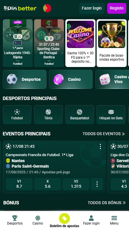 Com esse gosto pelo desporto, aliado à curiosidade pelas apostas desportivas, A SpinBetter é o lugar certo para os amantes do desporto e das apostas desportivas fazerem as suas melhores bets num ambiente apropriado para o efeito.