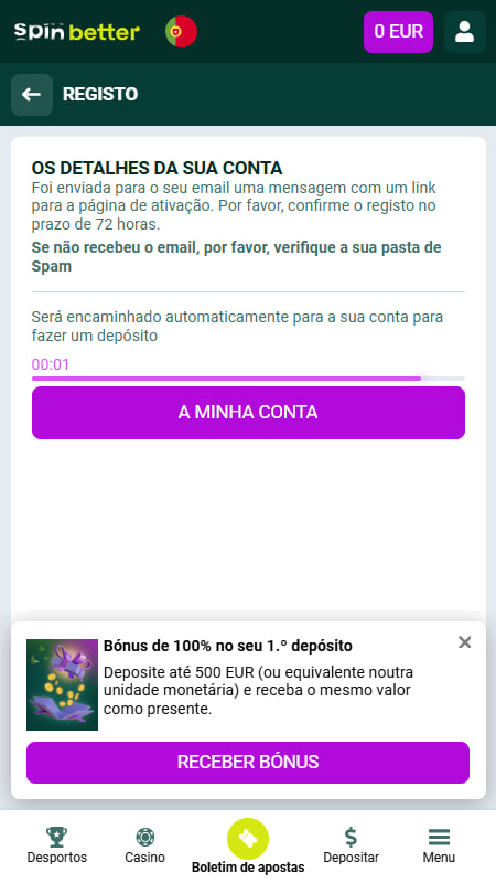 | Apoio Técnico | support-pt@spinbetter.com | Algumas horas |