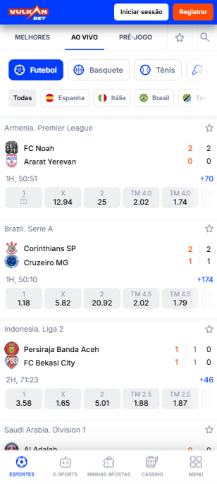 Este é um dos pontos fortes do Vulkan Bet Portugal. Rapidamente perceberá que terá muitos mercados de apostas nos grandes jogos, bem como promoções ao vivo. Poderá ainda contar com Vulkan Bet live streams, estatísticas ao vivo e Cash Out nas apostas em futebol ao vivo.