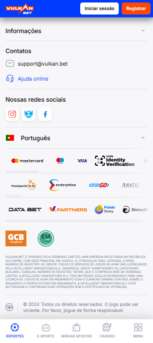 Estando presente no mercado há vários anos – tornando-se uma referência nas apostas desportivas online em Portugal – o Vulkan Bet tem uma licença internacional válida. O seu número de registo é 142065, com aprovação pelas Autoridades de Curação.