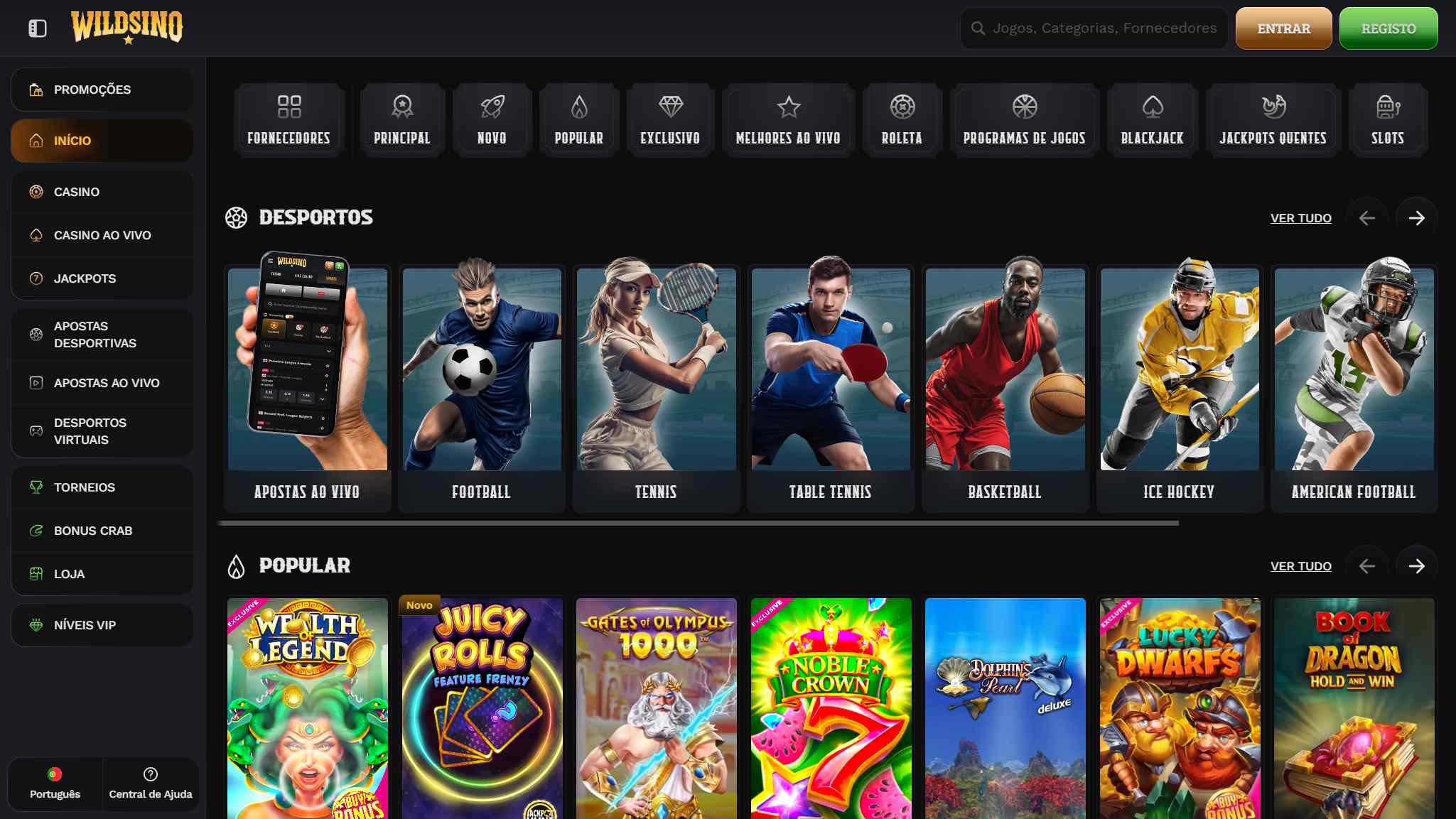 O Wildsino Casino oferece uma experiência completa e prova disso mesmo são os mais de 11.000 jogos de diferentes categorias. Os jogadores encontram uma enorme seleção de slots, incluindo títulos clássicos, modernos e outros com jackpots progressivos.