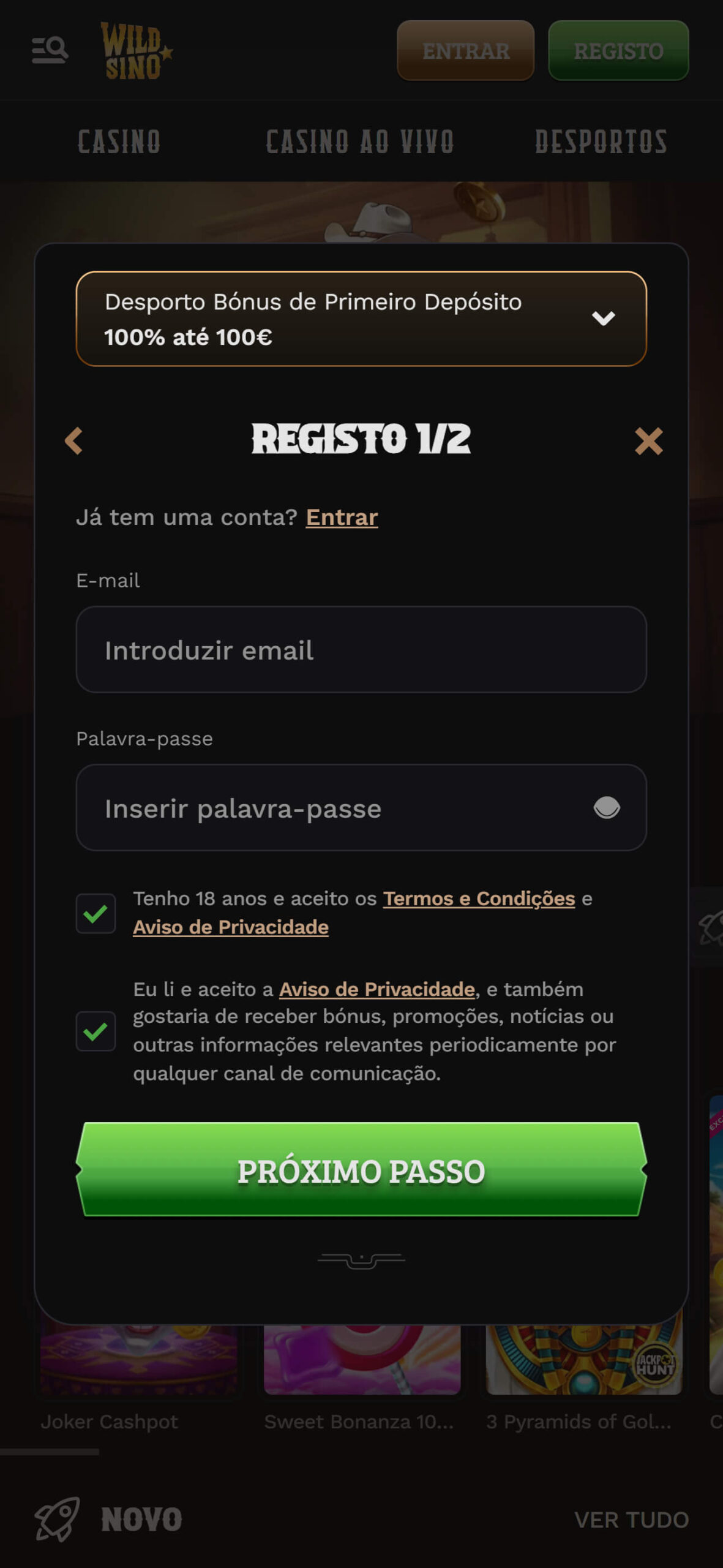 Ao contrário das slots, em que o jogador pode jogar o modo demonstração sem estar registado, para apostar no Wildsino Bookmaker é necessário o apostador estar devidamente registado e com saldo na conta.