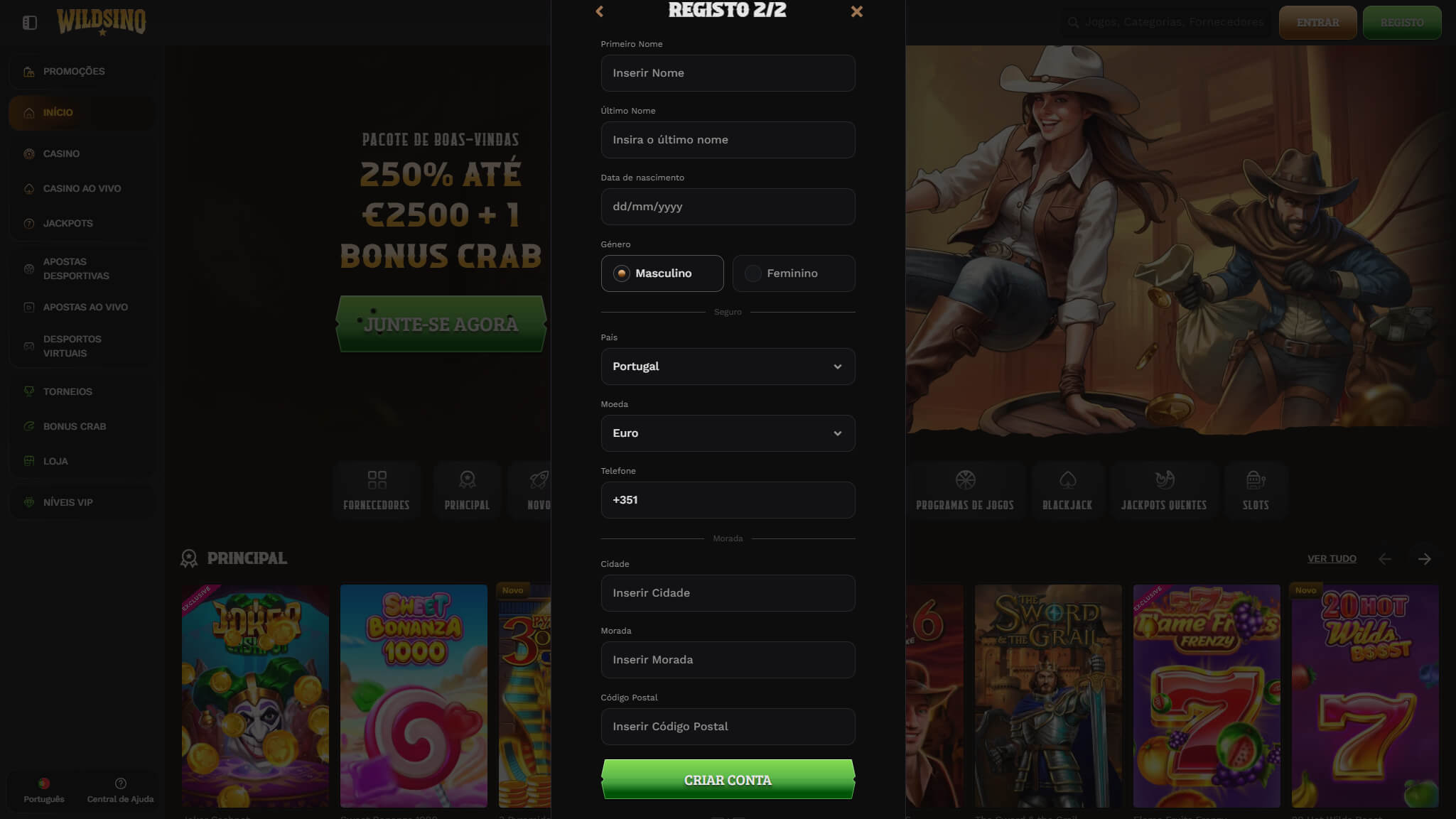 A plataforma é de fácil navegação, com o utilizador a conseguir navegar sem qualquer problema. Aliás, até para efetuar o registo o apostador precisará só de alguns dados para o concluir com sucesso. Vamos perceber como nos podemos registar rapidamente:
