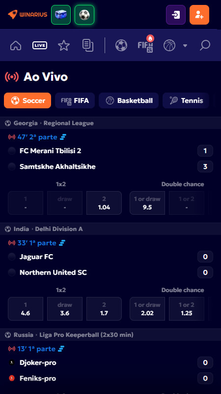 Os jogadores podem fazer apostas em jogos ao vivo e em pré-jogo. Com uma interface intuitiva, a Winarius garante uma excelente experiência em vários desportos como os seguintes: