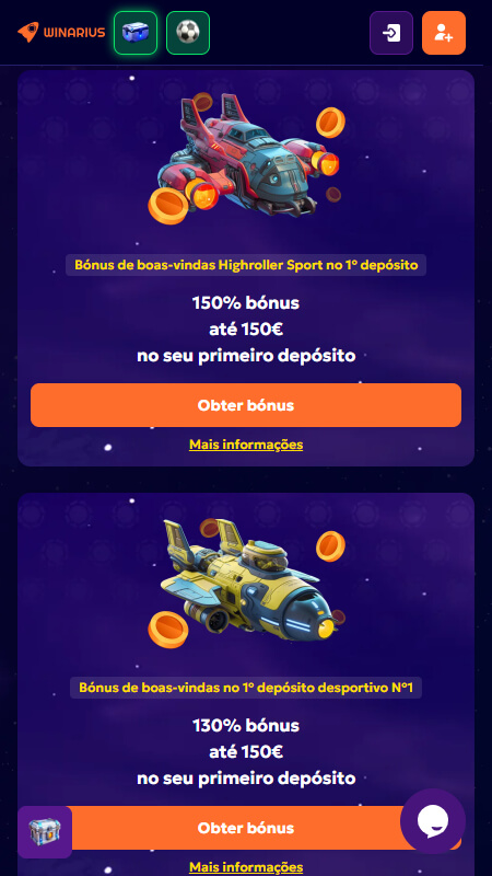 | 🎁 Bónus de Boas-Vindas em Desporto | 150% até 150 € no primeiro Depósito |