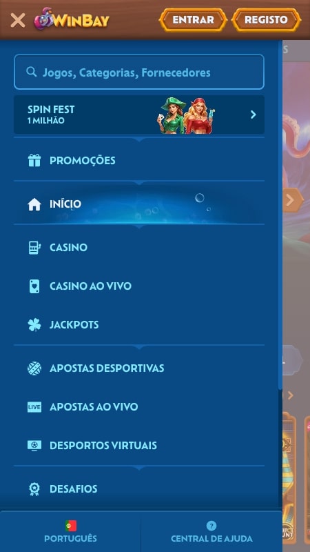 Mesmo sendo o desporto o foco da Winbay, a sua secção do casino não deve ser descurada! Esta é, aliás, uma área bastante completa, com slots, jogos de mesa como o blackjack, roleta, cartas, casino ao vivo e outros mais. Com um portfólio muito completo, a parceria com os melhores fornecedores do iGaming, permite que a Winbay ofereça só o melhor.