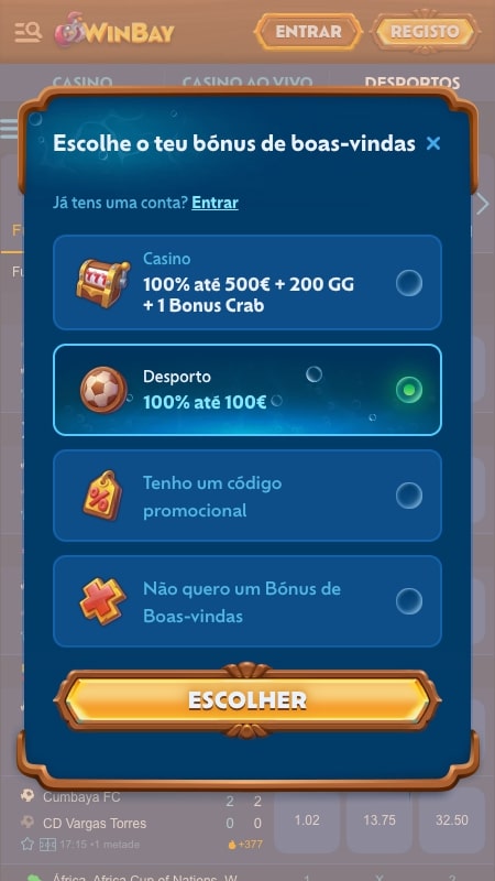 Se gostas de um ambiente ao vivo intuitivo, com odds atraentes, tens que experimentar apostar em tempo real na casa de apostas Winbay.