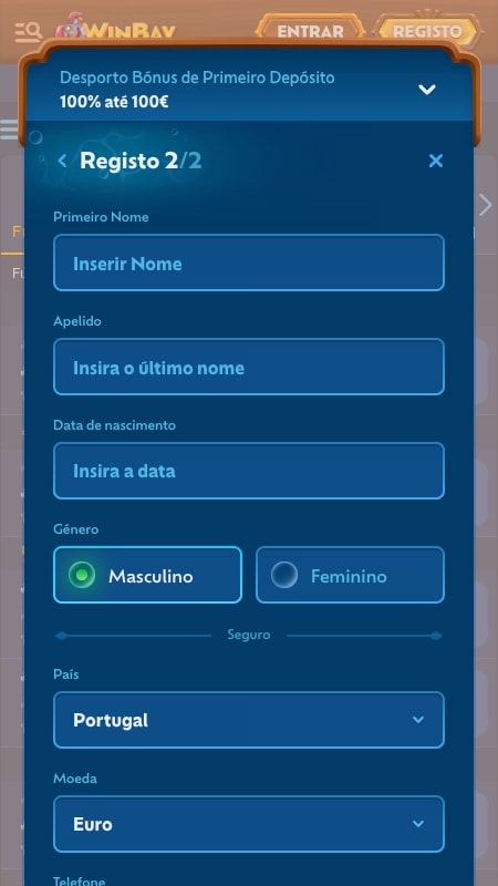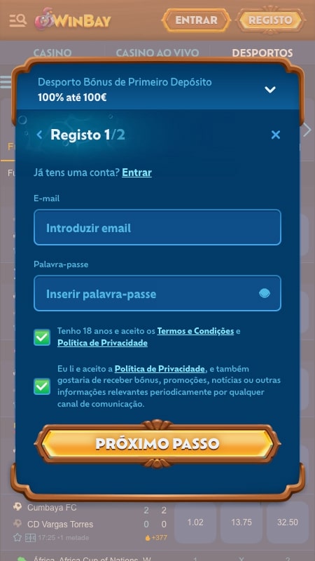 Para fazeres apostas desportivas terás sempre que criar o teu registo no Winbay Bookmaker, mas felizmente, esse é um processo bastante simples que muito rapidamente o fazes. Nós vamos ensinar-te como o poderás fazer rapidamente e com apenas alguns dados pessoais. Para te registares faz assim: